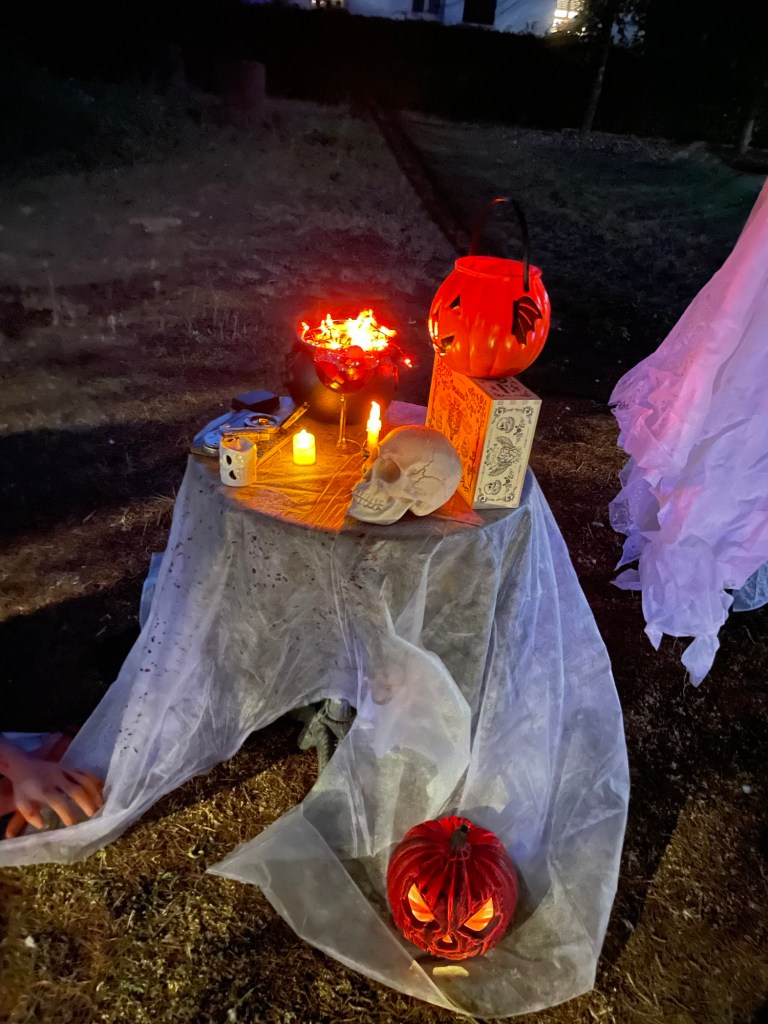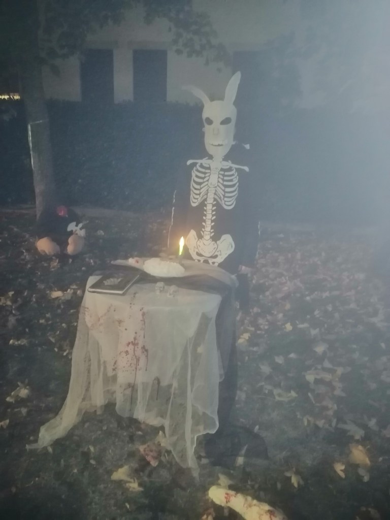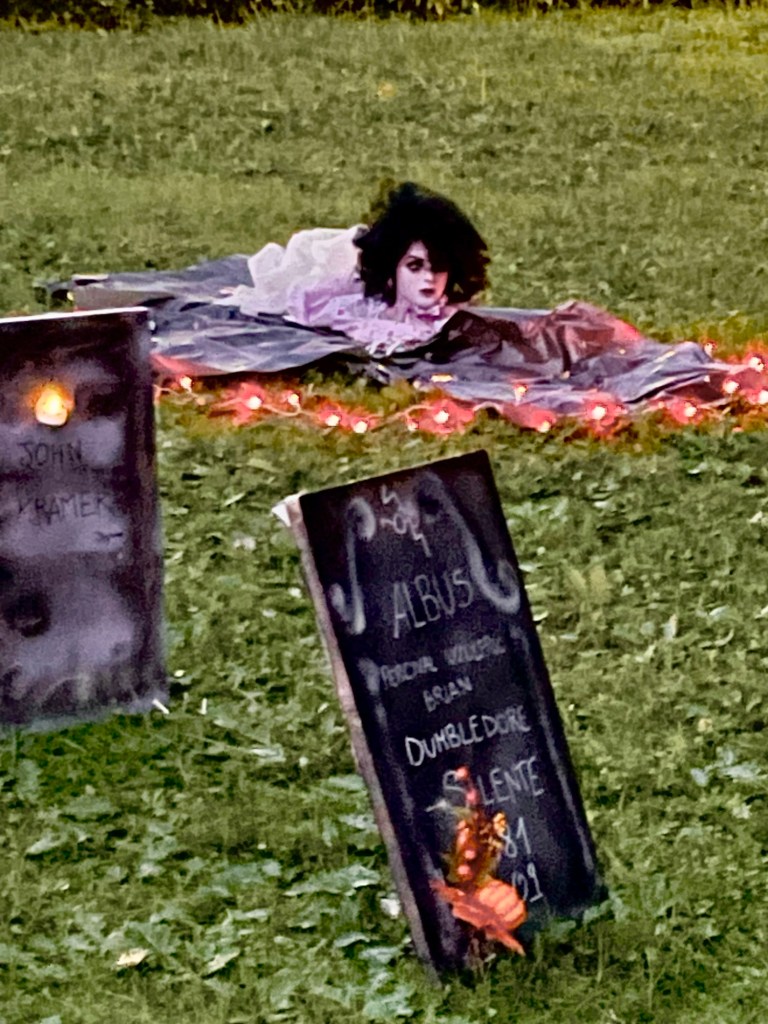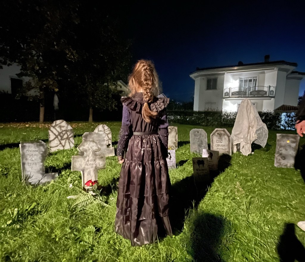 Da quando Amaranta era piccola con il gruppo delle mamme abbiamo sempre cercato modi divertenti di festeggiare Halloween tutti insieme.Così armata di pannelli di poliuretano ad alta densità,vernice e fantasia anno dopo anno ho dato vita al piccolo cimitero del 31 Ottobre nel giardino di casa.